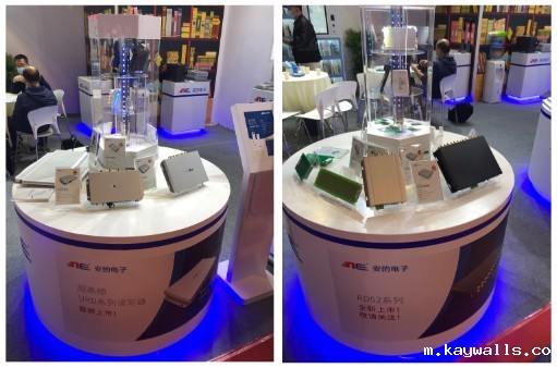 现场展示了新款的读写器、天线,手持一体机和手持终端。