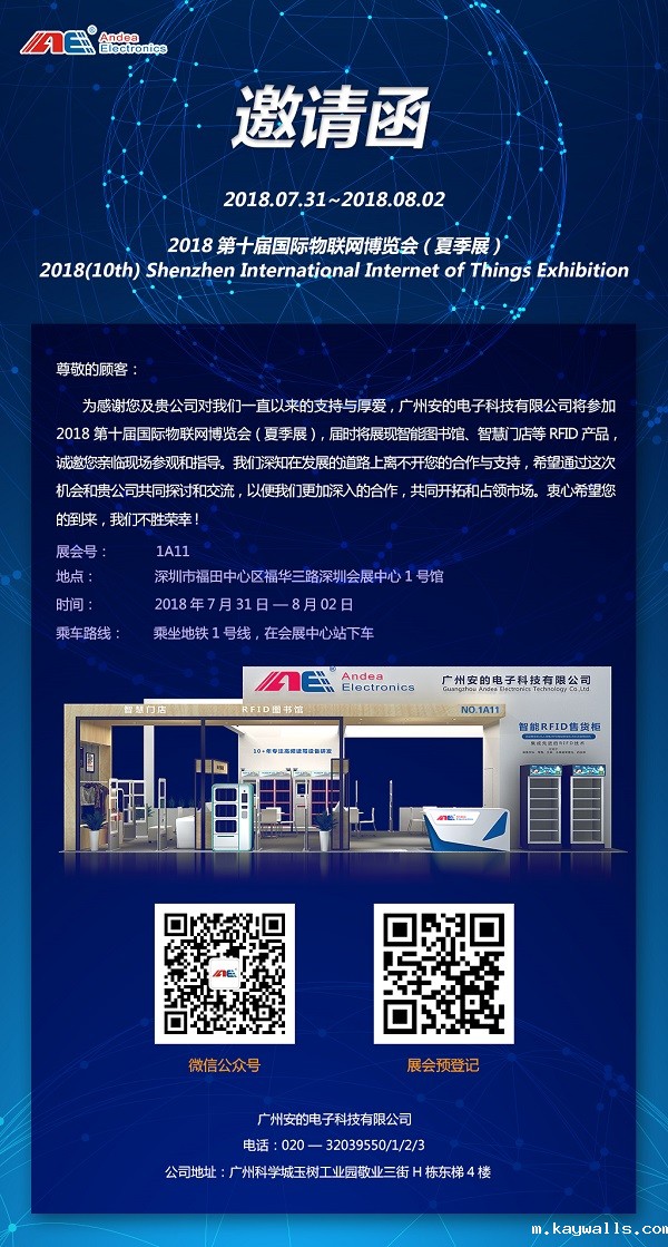 7月31日-8月2日为期三天的深圳2018第十届国际物联网博览会(夏季展),广州安的与您相约1A11。此次盛会可谓是空前绝后,居于国内,面向全球,RFID设备成为行业主流,多领域多行业都依托RFID设备周边产品,为数据的传输,产品的读取提供了方便快捷的条件。