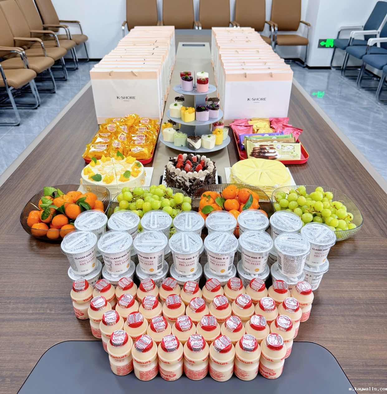会议室化身茶歇区,精心布置的甜品台供应蛋糕/水果/饮品,大家欢聚畅聊,在轻松氛围中共享甜蜜时光。