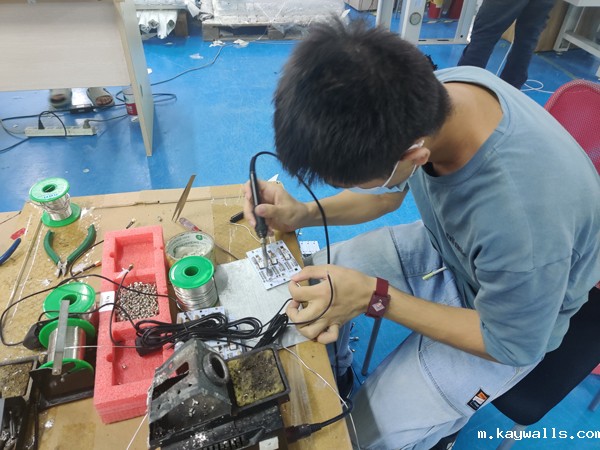 话不多说,我们赶紧来感受下比赛现场高强度的比赛气氛吧!咚咚咚,压线、剪线、剥线,整道工序一气呵成;哧溜哧溜,一个完整的固定架就出炉了;不到十分钟,调谐板焊接工位上就积攒了一些上道工序的半成品;组长立即调配队员进行调谐板焊接。随着人手调配,每位成员都在自己熟悉的工序上紧张而有序地操作着。等到亚克力C/EVA棉组装完成,立即进入调试和测试环节,这个阶段需要对天线调谐板参数进行调试、安装固件和配置文件,这里能够初步检测到前几道工序是否合格,以及直接影响到安全门最终效果,需要调试人员严格把关。参赛队员大展身手,充分展现劳动之美、技能之光。不到半个小时,一片半成品的安全门就下线了。