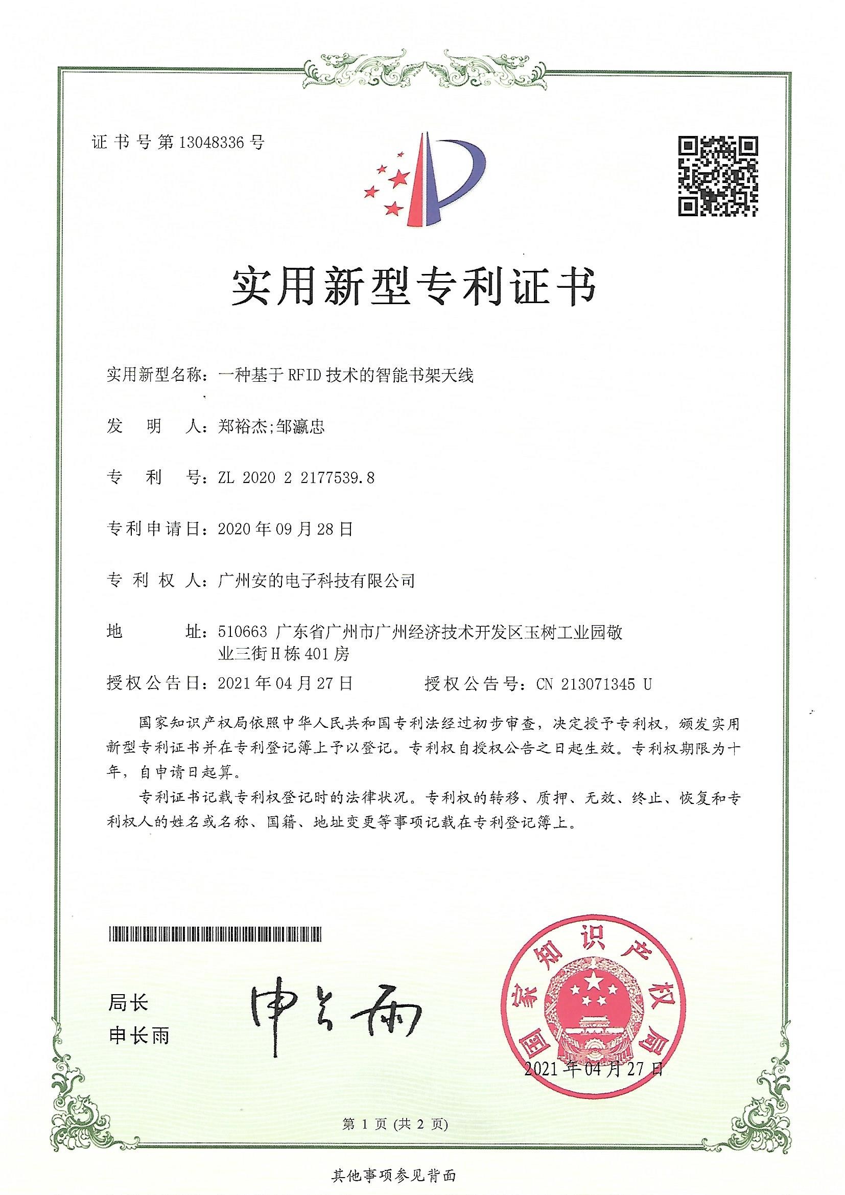 一种基于RFID技术的智能书架天线实用新型专利